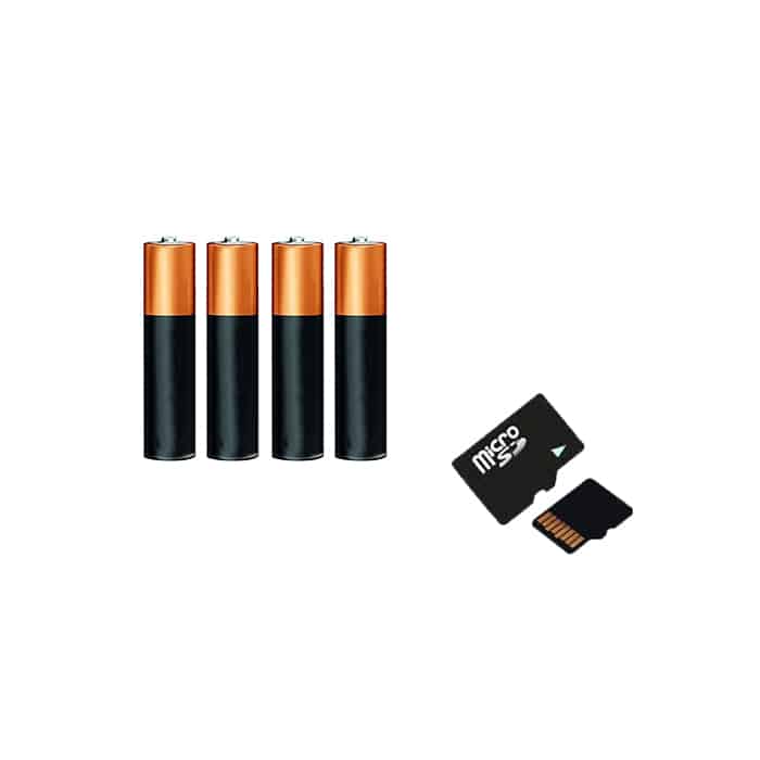 | Balení Obsahuje: | 4x AA baterie | 1x MicroSD 32GB paměťová karta |