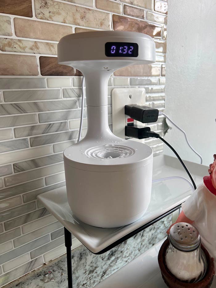 Zvlhčovač vzduchu dokonale zvlhčuje a provoní místnost a optická iluze kapání nahoru z něj dělá dokonalou dekoraci!