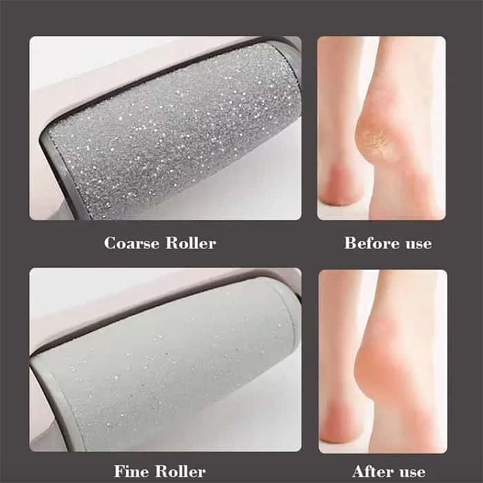 Hrubší nástavec na váleček je určen k odstranění tvrdé kůže, zatímco jemnější jemně vyhlazuje a zjemňuje kůži! A silikonové ponožky mají gelovou výstelku, která je napuštěná všemi důležitými vitamíny a složkami pro změkčení tvrdé a popraskané kůže!