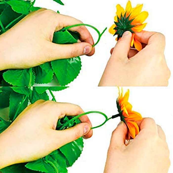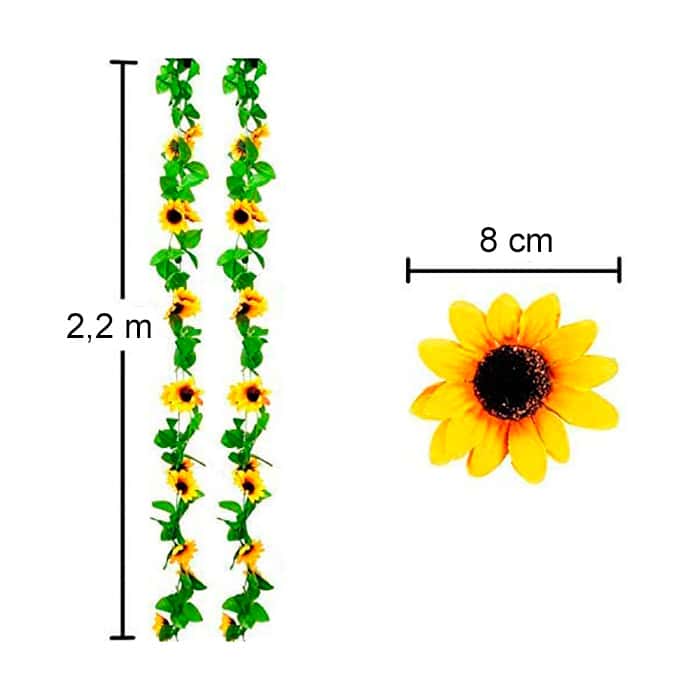 - 2,2 m dlouhá girlanda se slunečnicemi a zelenými listy, které vypadají jako skutečné.