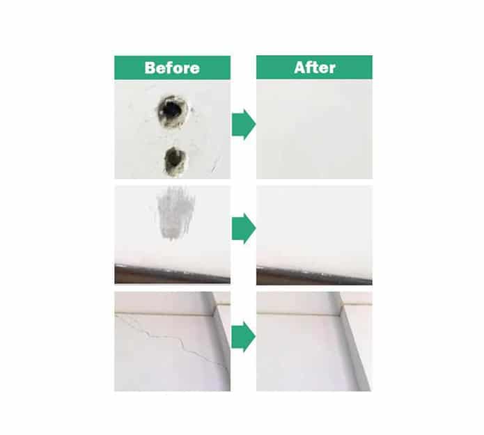 Konečně můžete rychle a velmi snadno opravit jakékoliv poškození stěn ve vašem domě, které vám už dlouho vadí. Prostředek spolehlivě a neviditelně opravuje prohlubně, škrábance, díry od hřebíků, odlupující se stěny, spadlé omítky a vše, co může zničit vaše krásné bílé stěny. Rychle opravte všechny tyto nesrovnalosti a znovu budete moci klidně spát.