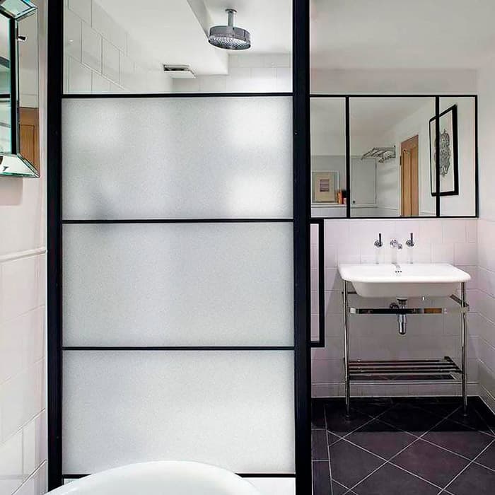 - Samolepku lze aplikovat na okna, skleněné příčky, nábytek se skleněnými dveřmi, sprchové kouty atd.