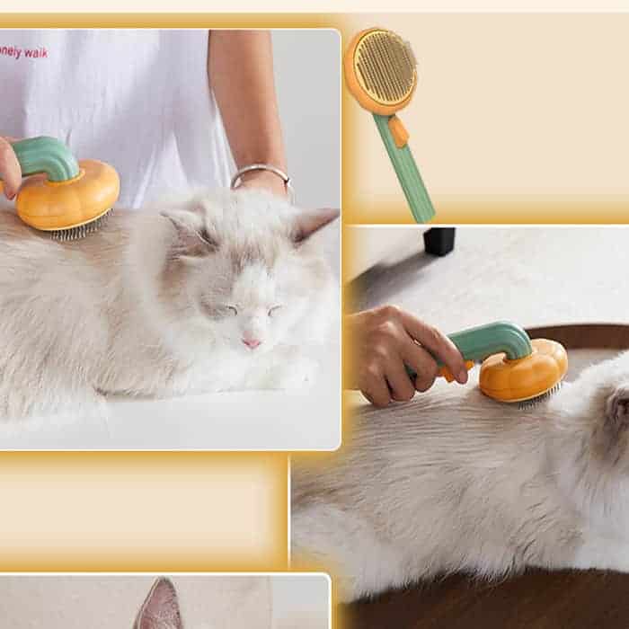 PumpkinComb, kartáč pro domácí zvířata s tlačítkem pro snadné očištění