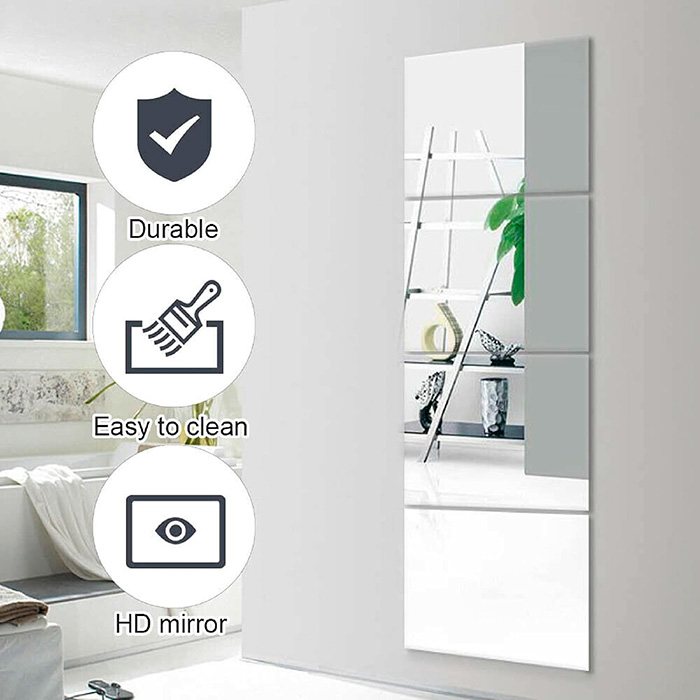 Samolepící nálepky na zeď jsou skvělé pro rozjasnění místnosti, vizuální zvětšení, ale také poskytují čistý obraz, takže se můžete podívat do zrcadla!