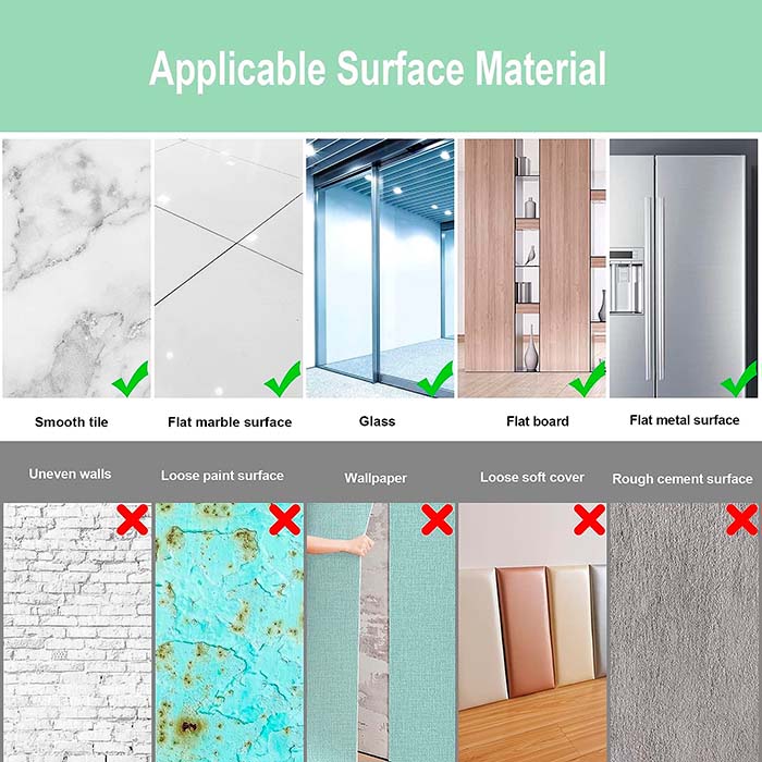 - Vhodné pro všechny rovné povrchy, jako jsou zdi, dlaždice, sklo, dřevo, kov atd.