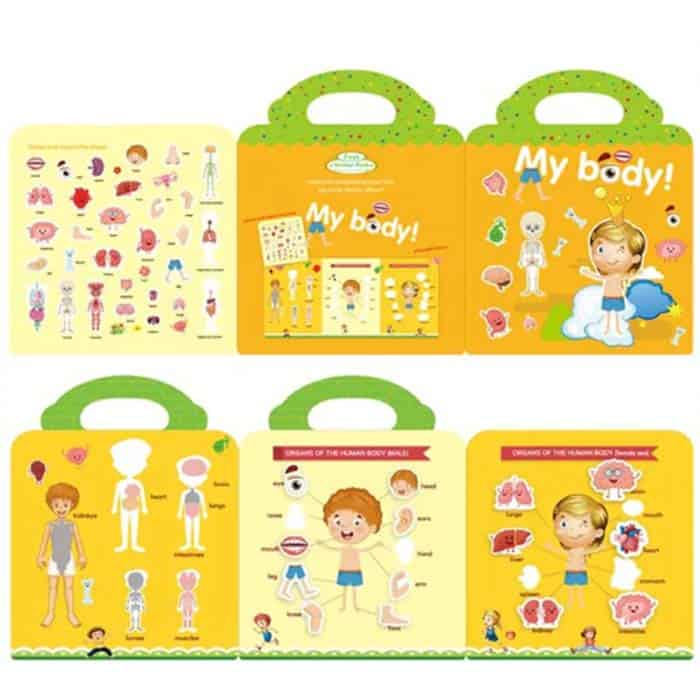 Děti se zábavnou formou dozvědí o částech těla a charakteristikách různých kontinentů na Zemi! Naučné knihy jsou rozšířeny o 3 listy s obrázky, do kterých děti nalepí samolepky. Během hry si aktivně rozvíjejí jemnou motoriku a jazykové schopnosti!