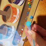 - Dítě používá tyčinku k třídění barevných kuliček