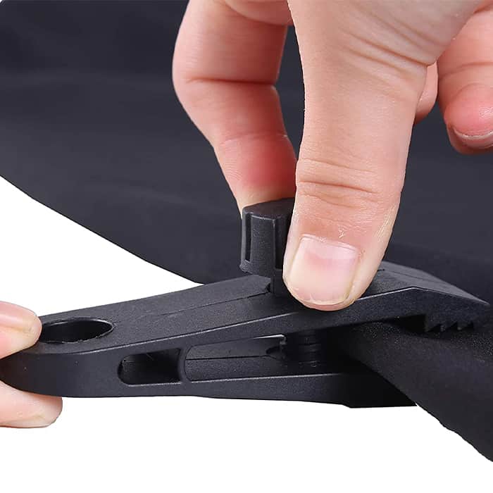 Stan, přikrývku nebo ochranu člunu upevníte pomocí svorek TentClips rychle a jednoduše!